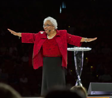 In 2016, she spoke for Women of Faith on the final LOVED tour, traveling to 22 cities and reaching more than half a million women. Her passion was telling everyone they could “BEE” their best in Christ—a mission she carried out for over 50 years.