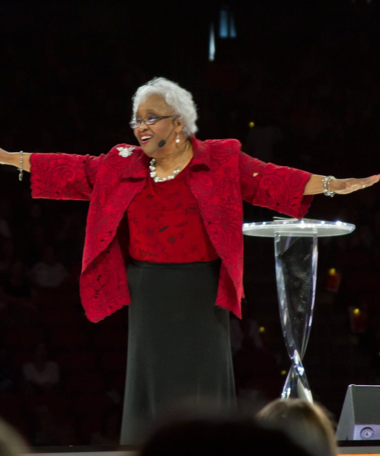 In 2016, Thelma launched her GENERATION LOVE: DIVINE EXPLOSION conference tour. Her influence as a great-grandmother flowed from a mantle inherited from her great-grandmother, Sarah Harrell. Thelma delighted in seeing generations of women come together to stand for Christ. This conference encouraged women to bring their entire families, including girls ages 10 and up.
